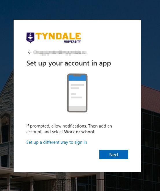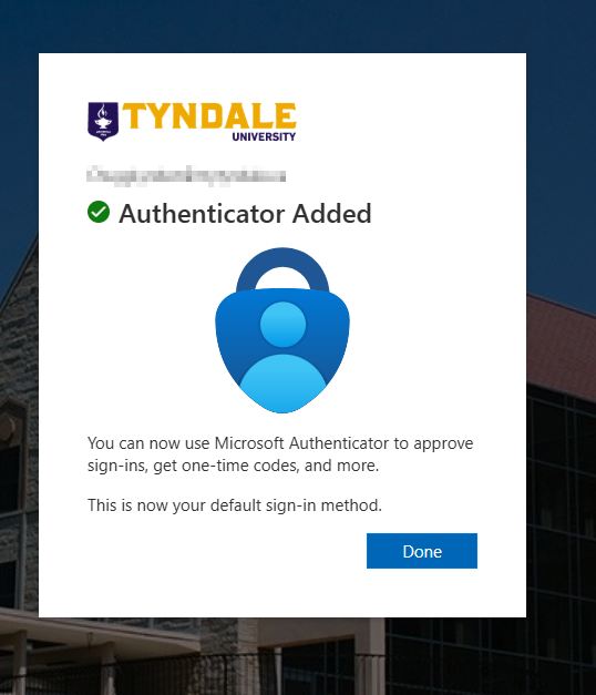 MFA (Multi-Factor Authentication) is a cybersecurity best practice widely adopted by organizations worldwide to protect users and their systems and data. MFA enhances your Tyndale account security by requiring multiple verification methods beyond just your password. MFA combines something you know (e.g., a password) with something you have (e.g., a phone). To provide an extra layer of security, you will be prompted to authenticate using the Microsoft Authenticator app on your mobile phone or tablet in addition to logging in to Tyndale applications using your username and password.