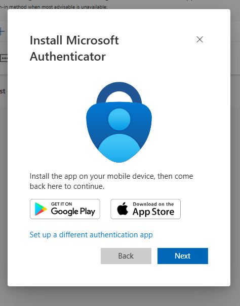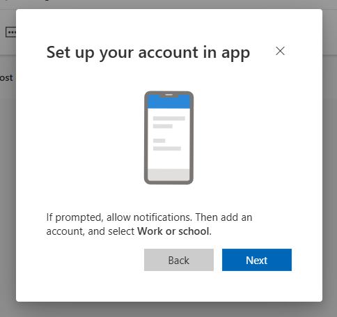 3. Next, you will be prompted to download an app called Microsoft Authenticator onto your phone, tablet or another compatible Android or Apple IOS device.
