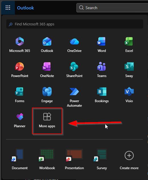 3. Click the More Apps button as indicated, and you will be redirected to the Office Apps home page.